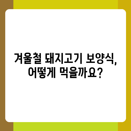 겨울철 돼지고기 보양식, 어떻게 먹을까요?