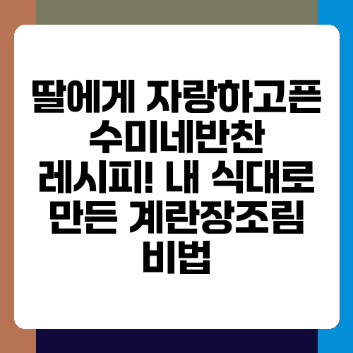 요즘 밥상에 자주 올리는 반찬 중 하나가 바로 계란장조림이에요. 딸아이도 계란장조림을 정말 좋아하는데, 수미네반찬을 보면서 제 나름대로 레시피를 조금씩 바꿔가며 만들고 있답니다. 오늘은 제가 딸에게 만들어주는 계란장조림 레시피를 공유하려고 해요. 수미네반찬을 참고했지만, 제 입맛에 맞춰 조금씩 변형한, 좀 더 쉽고 간편하게 만들 수 있는 방법이랍니다! 함께 만들어보시겠어요?