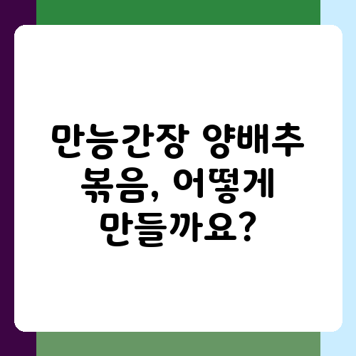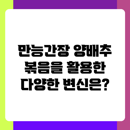 양배추, 냉장고에 굴러다니는 채소라고 생각하시나요? 오늘은 양배추를 활용해 누구나 쉽게 만들 수 있는, 맛있는 양배추 볶음 레시피를 소개하려고 합니다. 단 하나의 만능간장만으로도 감칠맛 나는 양배추 볶음을 완성할 수 있다는 사실, 믿으시겠어요? 저도 처음엔 놀랐지만, 직접 만들어보니 정말 간편하고 맛있더라고요. 지금부터 만능간장 양배추 볶음의 매력에 빠져보세요!