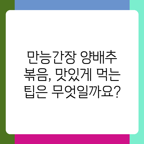 만능간장 양배추 볶음, 맛있게 먹는 팁은 무엇일까요?