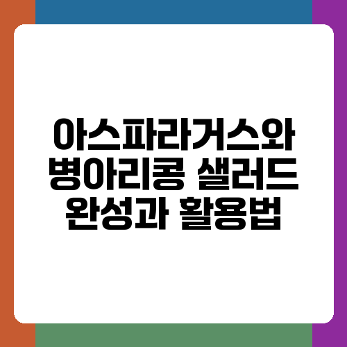 오늘은 아스파라거스와 병아리콩 샐러드 레시피와 활용법에 대해 알아보았습니다. 간단한 재료로 맛있고 건강한 샐러드를 만들 수 있다는 사실이 놀랍지 않으세요? 여러분도 직접 만들어보시고, 다양한 방법으로 활용해 보시면 좋겠습니다. 만드는 과정에서 궁금한 점이 있다면 언제든지 질문해주세요. 즐거운 요리 시간 되시길 바랍니다!