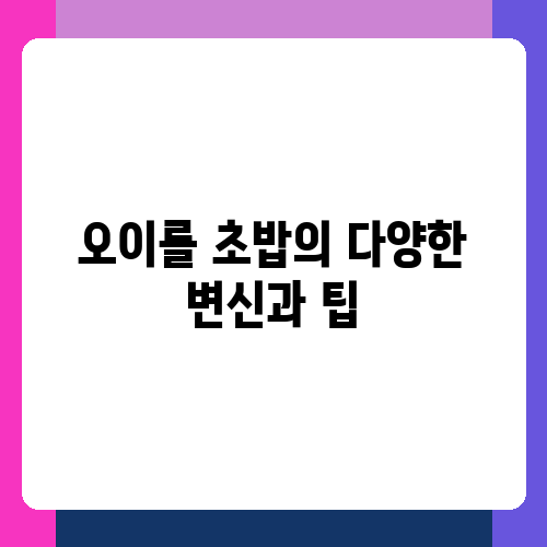 기본적인 오이롤 초밥 레시피에 다양한 재료를 추가하여 나만의 특별한 초밥을 만들어 보세요. 매콤한 맛을 좋아한다면 고추냉이를 조금 넣어도 좋고, 아보카도나 크림치즈를 넣어 풍부한 맛을 더할 수도 있습니다. 톡톡 터지는 날치알을 넣어도 색다른 식감을 즐길 수 있답니다. 또한, 김 대신 깻잎을 사용하면 한국적인 느낌을 더할 수 있습니다. 다양한 시도를 통해 자신만의 레시피를 개발하는 재미도 느껴보세요. 그리고 초밥을 만들고 남은 재료로는 간단한 샐러드나 다른 요리를 만들어서 활용하면 더욱 경제적이고 실용적입니다. 재료를 아끼지 않고, 다양한 재료를 활용하면 더욱 맛있는 오이롤 초밥을 만들 수 있습니다.
